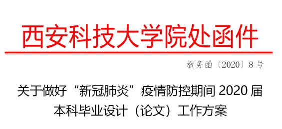 根据学校“新冠肺炎”疫情防控期间教学工作方案要求,本着“停课不停教、停课不停学,学习不延期”的原则,充分发挥广大教师的积极主动性,通过各种网络技术手段,利用学校“大学生毕业设计(论文)管理系统”平台,做好疫情防控期间2020届本科毕业设计(论文)工作,制定工作方案。