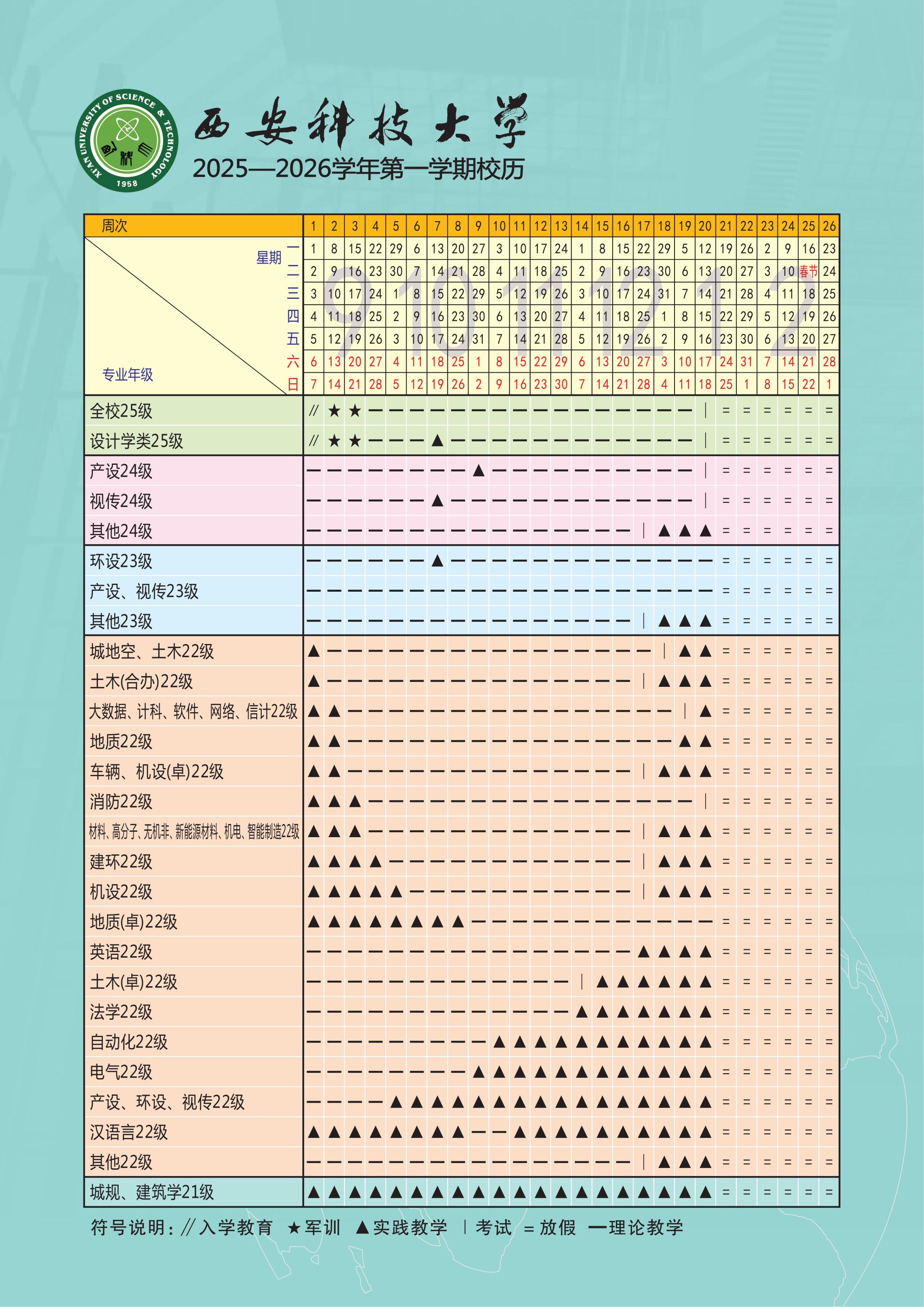 西安科技大学2025-2026学年第一学期校历.pdf
